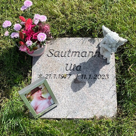 Uta‘s Urnengrab Uti & ich Uta bei uns im Garten